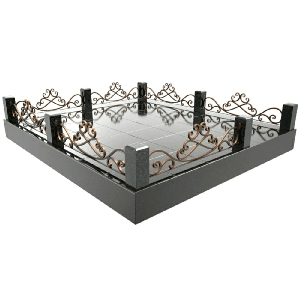Кроме высокой декоративности преимущество кованых оград с гранитными столбами — использование в оградке того же гранита, из которого изготовлен памятник. Благодаря этому общая надгробная композиция выстраивается в цельный ансамбль, в котором все элементы согласованы друг с другом.